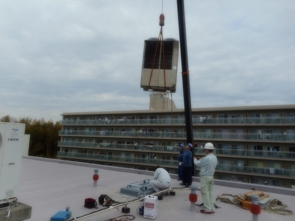 ⇒ 建物外構部の1階に存した大型空調室外機を屋上に移設しました。 リニューアルした各階の談話スペースから室外機音を聞きとろうとしても、 鳥のさえずりが静寂(しじま)に響くだけ。